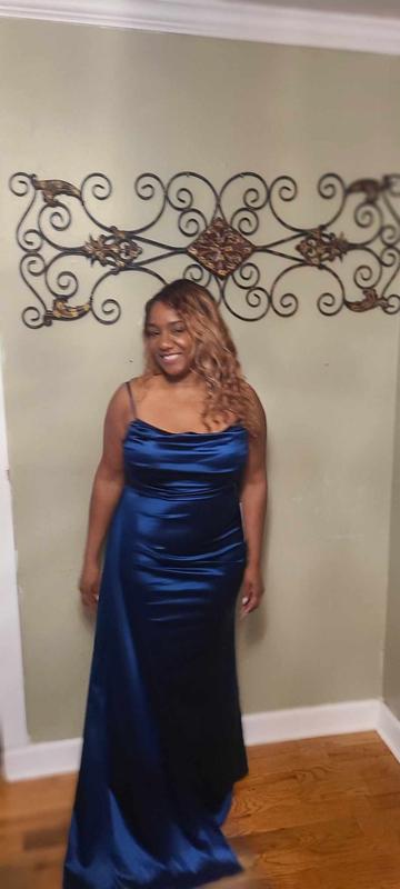 I was pleasantly surprised with this dress. Simple overall, but I love the "drama" the slit and side fabric give that sets it apart from the rest. love the color. the dress was comfortable and the fit is true to size.