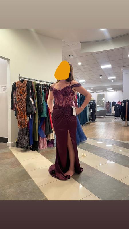 Dress is pretty; however, it runs very small. My daughter is usually a dress size 16 and this was inches from zipping. This XXL wouldn’t fit anyone that was larger than a 12. This dress is not friendly to anyone who may have a larger frame
