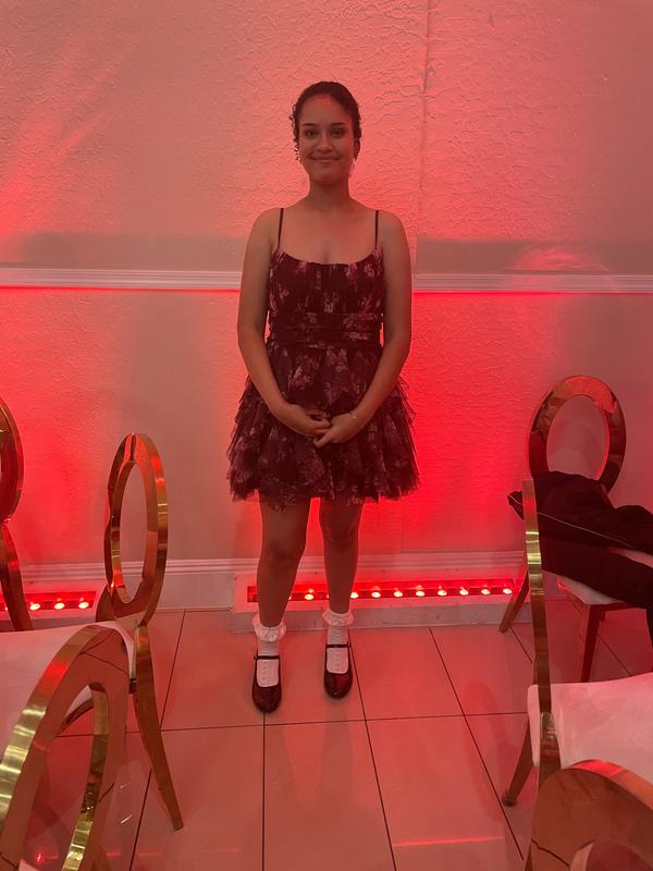 Beautiful dress, pretty colors, nice material. Fits true to size.