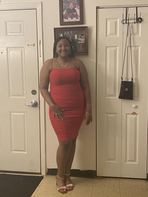 Very cute dress. I bought it for my grandaughters homecoming dance. She didn’t want a short dress. She is pretty petite and the XS didn’t fit. The S fit better. We did have to get straps on the dress tailored because they kept slipping down
