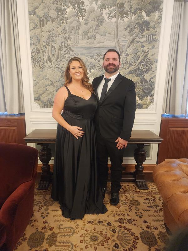 B DarlinTrendy Plus Size Satin Sleeveless Front-Slit Gown