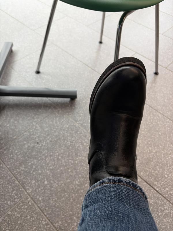 - Upper: leather or faux leather; lining: textile; outsole: rubber