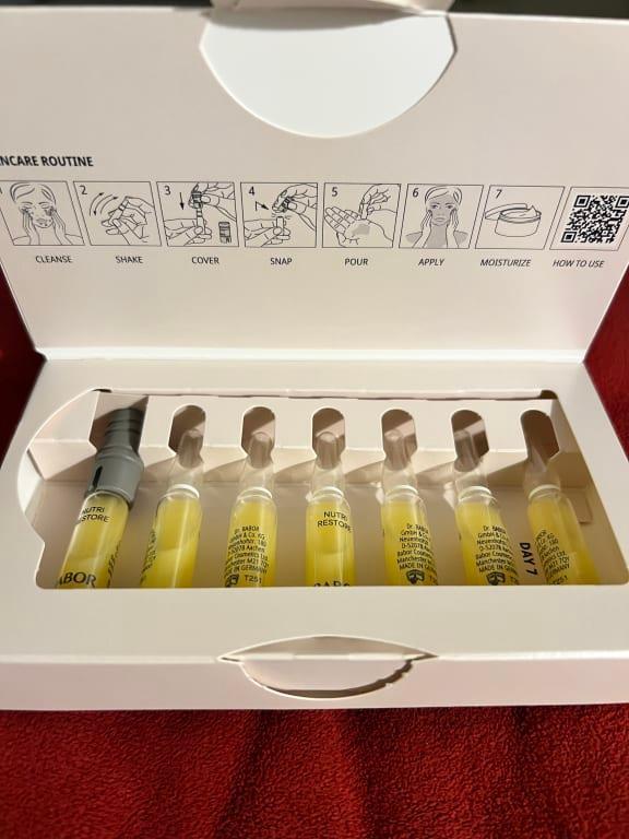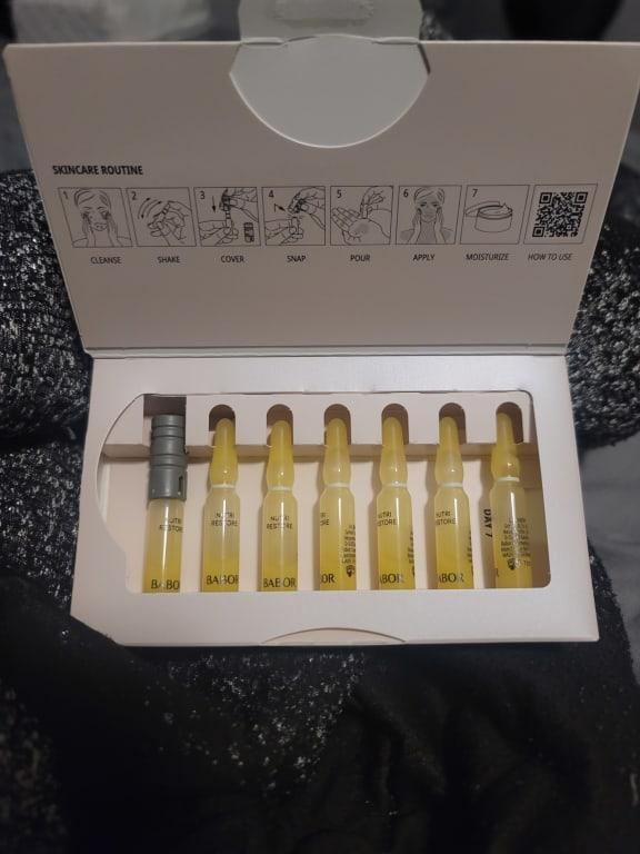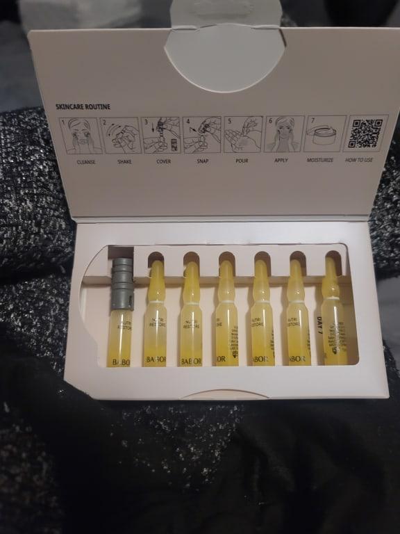 Received by bzzagent. It comes in a glass little vile and a cap to brake it open which is kind of cute. It doesn't have a smell to it. Apple it was smooth but took a bit to long absorb. After 7 days I really didn't see a difference in before and after which was a bummer.