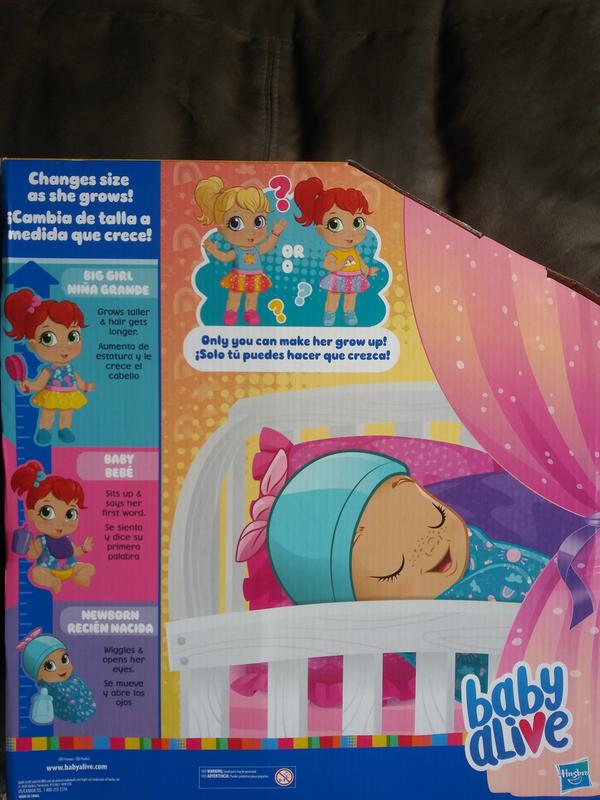 I got this Baby Alive Baby Grows Up Doll a few weeks ago and it is so cute. It goes through 3 stages of life, starting as a baby and ending up as a big girl. It's face moves and it says a ton of phrases as it grows. And it comes with accessories for each life stage. This doll is very cool and any child would love it!