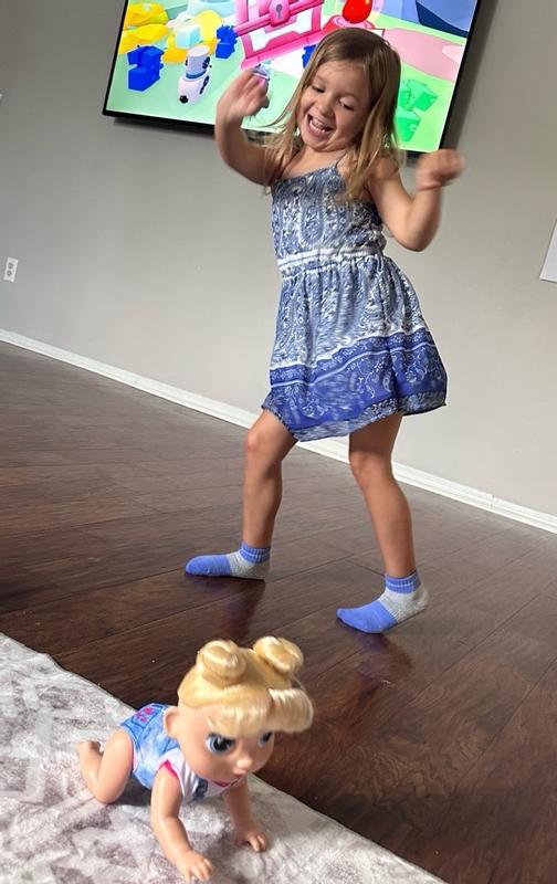• OVER 40 ADORABLE SOUNDS: This interactive baby doll makes so many cute sound effects like getting excited to crawl, eating, and giggling as she goes. Requires 4 AA batteries (not included)