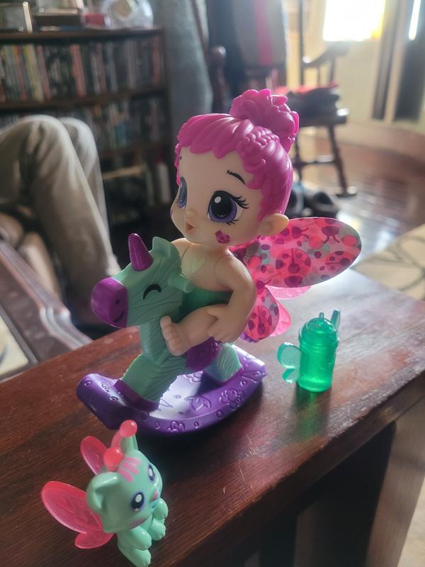 The Baby Alive Glo Pixies Minis Doll, Berry Bug is a very cute tiny size of the original baby alive. It is small enough that it is easy to travel with, because it takes up no room in your child's toys. It comes with very cute horse rocker and baby bottle, along with a suprise toy for the baby doll. My little one is 6 years old and she loved the toy and was so excited to open it and play. I would recommend this toy for any little one who likes mini toys and who likes baby dolls.