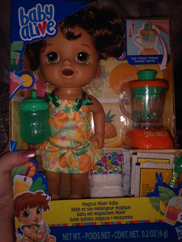 The Baby Alive Baby Pineapple doll is a cute doll for kids. You mix up a packet of her pineapple food in her magical mixer that really works. My niece plays with her baby doll for hours and has so much fun. After feeding her and giving her some water. She messes her diaper and you gotta change it. But for some reason this is fun for a kid.