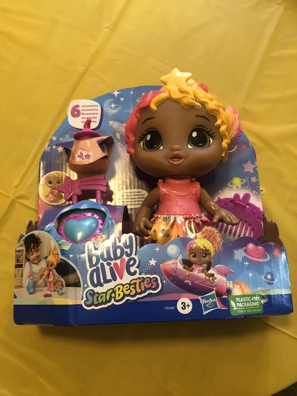 I received my Baby Alive star besties, Bright Bella, cute doll, and accessories, the girls have really enjoyed playing with her. She has, bright colors. Nice packaging, easy to open. Doll itself is easy to use, clean and store.