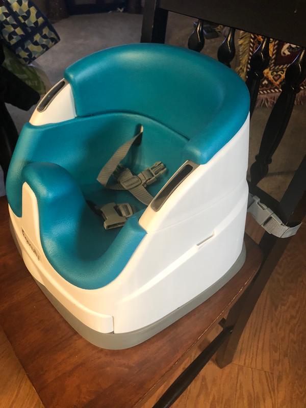 This is the easiest little booster and perfect for grandparent's house or on the go! It's got a sturdy base and two strap options to go under a chair or around the back of it. It even has a compartment underneath to store the straps. The foam seat and tray are easy to wipe clean. The three point harness and the tray do a great job of keeping my squirmy worm seated. Love that the tray stores easily under the seat; you just have to make sure the strap in-between the legs is pulled all the way up or else the tray won't slide in properly.