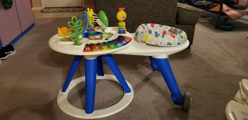 I got this as a gift. My son is only 4 months old and can already walk around in it, he can also move the entire unit and I’m pretty sure with one swift movement of throwing himself back in the seat he’d be able to topple the entire thing over while in it. For the price this product is extremely made and more importantly extremely unsafe.