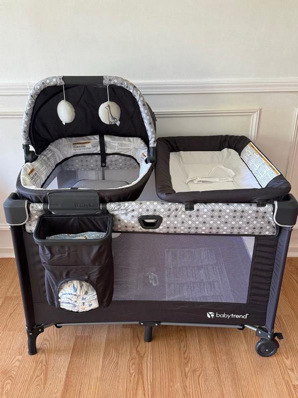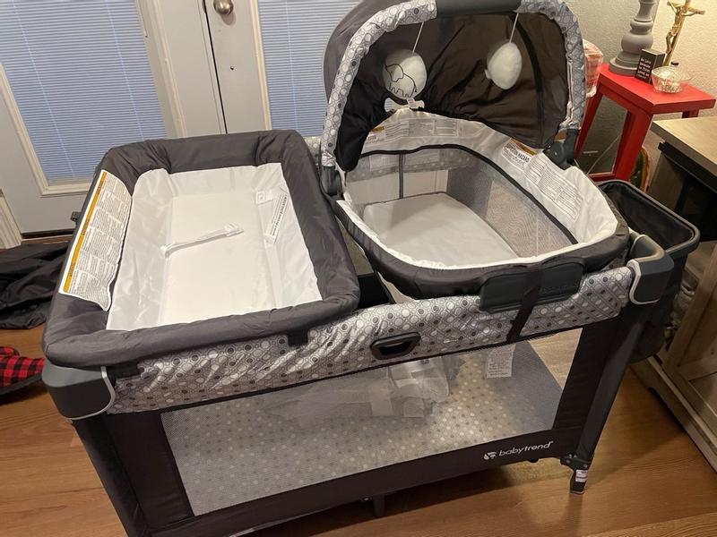 This pack and play is a great combination of all the necessities needed for a growing child. The bassinet is wonderful, you can pull it out with ease when moving the baby around with you. There is also a portable diaper changing station with a mesh side pocket to store extra diapers and wipes which helps you stay organized. I love how there’s an option to move it around so easily!