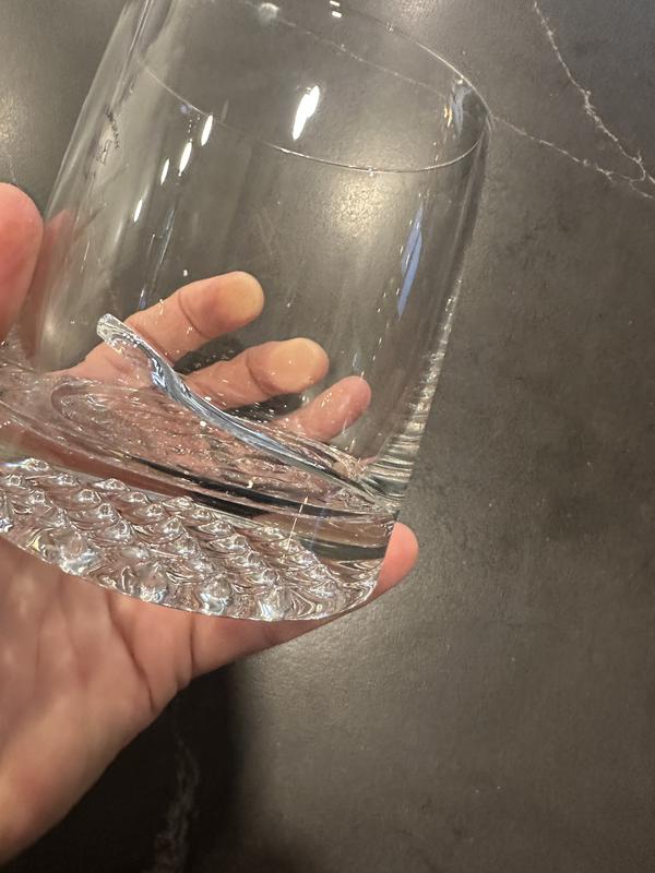 A delicate yet sturdy glasses. I love the weight where it’s heavy at the bottom but not too heavy to hold. Love the way it fits in my hand too. The design at the bottom of each glasses slightly differ from glass to glass but that just tells me that they’re hand made. Nothing that bothers me. I also like the fact that it has a clean line where you hold it.