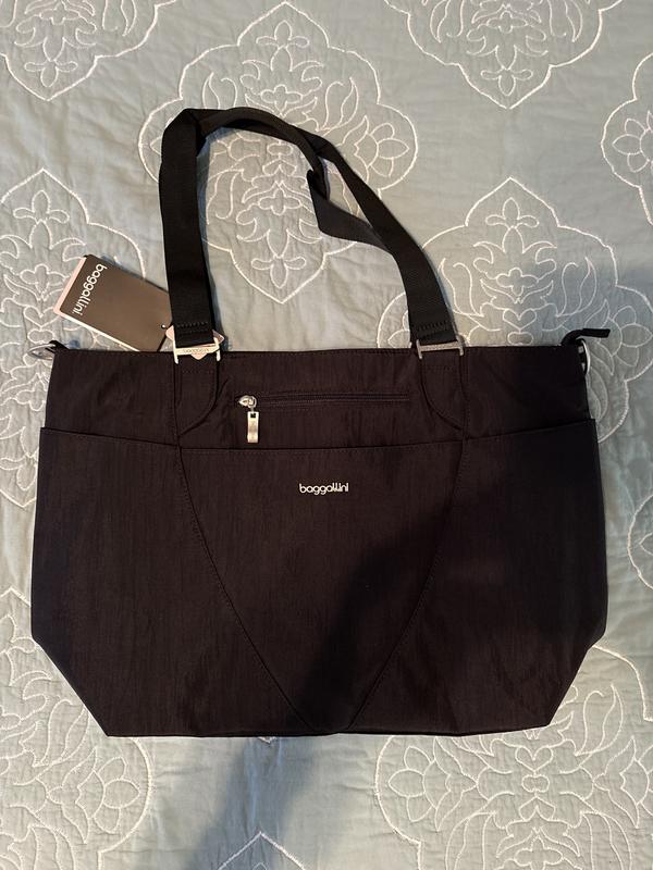 It's the perfect bag to travel with. It's just the right size to hold all of our stuff, plus the stuff our husbands ask us to hold (after asking us why we carry such a big purse), and it's lightweight. Big but not gargantuan-sized.