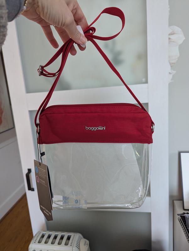 I’m happy with the quality and size of this clear crossbody bag. I can fit everything I need in it and it’s easy to get through security with it.