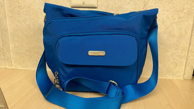 This is the second bag I bought in this style. I have many baggallini bags and this is my favorite style so far. Its size is perfect for my petite height. Yet it holds all of my stuff. The organization is key. I like a front wallet pocket for my cards. It holds my phone and personal items. The crossover zipper compartments hold lots without being too bulky. I would even buy a third one in another color. It’s my everyday bag.