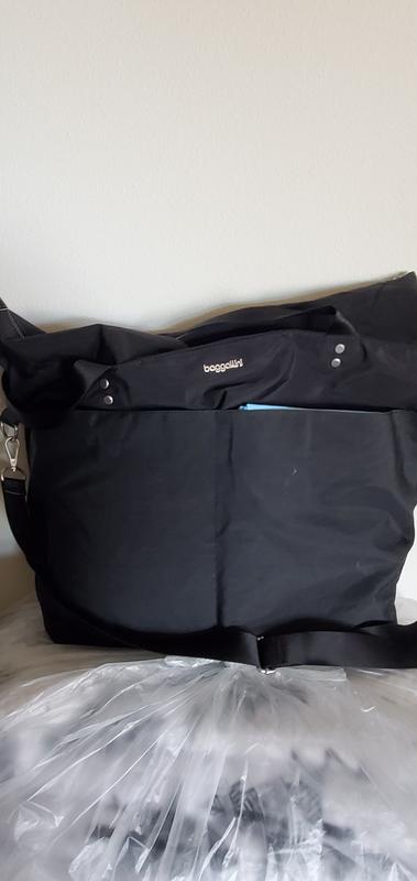 I saw this bag at a Baggallini airport vendor and liked the size, shape, and material. Plus it is a pretty. I ordered it and am pleased as it looks just like the one at the airport. It's also not heavy which is a big plus.