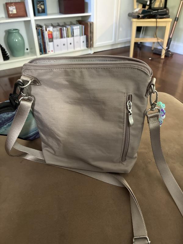 The bag is really well designed. The grab and go cell phone pocket is perfect. Multiple smaller zipper pockets are really helpful organizers. I hadn’t even realized it had a soft fabric covered glasses pocket until it arrived. The card slots are very conveniently placed. The fabric is sturdy but attractive. I’ve had my previous baggalini bag for 8-10 years and it is still in great shape. The only negative I have is that the strap it comes with was too narrow for the size of bag. It dug into my shoulder and looked “off” in comparison to the bag. I ended up trading it out for a wider black strap I had from another bag and it solved the problem.