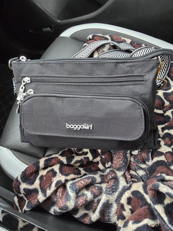 I've always loved baggallini smaller crossbodies but this size is great for traveling and carrying just a few more items.
