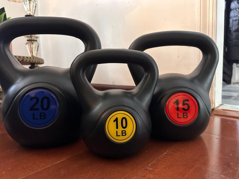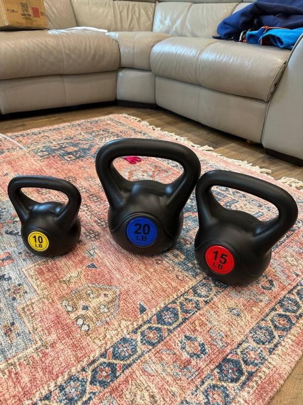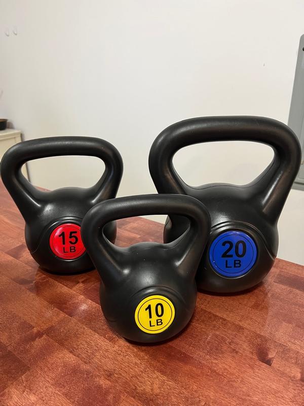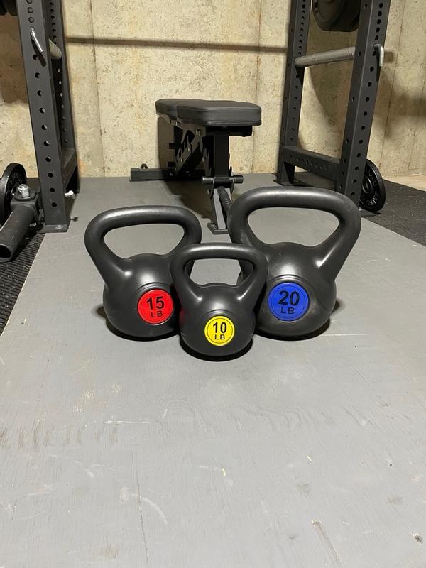 These kettlebells come in handy for a quick workout before bed, when I don't feel like going to the gym. They are durable and fit comfortably in my hands. The 20 lb's handle is a little big for my wife's hands, but she has no problem with the other two.