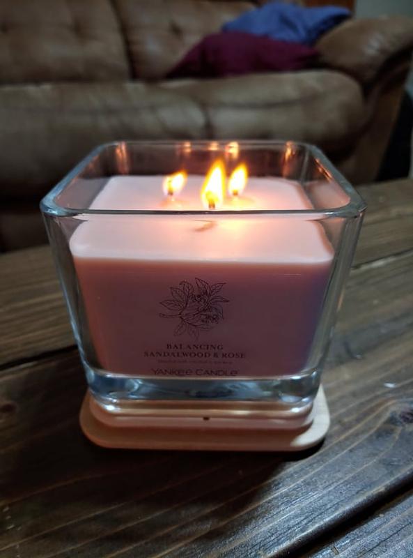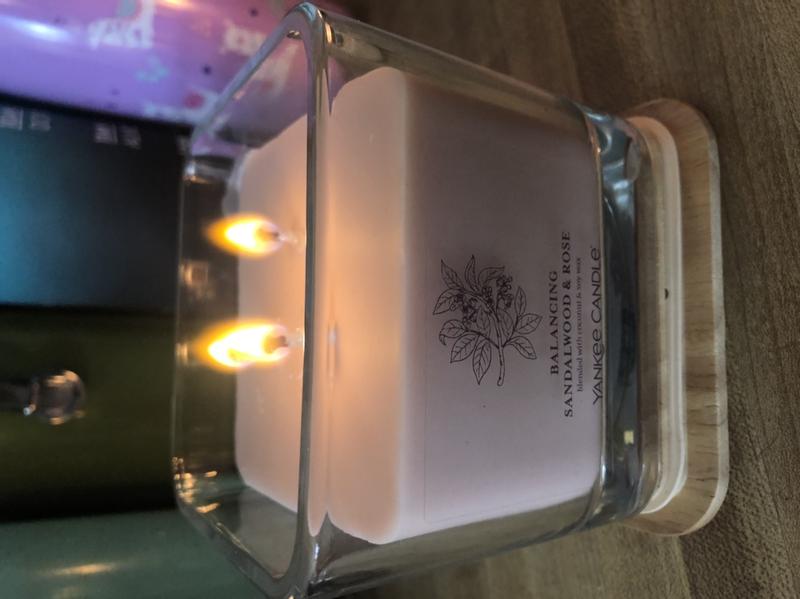 This scent is amazing. I couldn't really smell the last candle I purchased, Crisp Fall Night, but the scent of this one fills my small bedroom with a strong scent without being overpowering. It feels like they got the ratio exactly right with the balance of sandalwood and rose. The sandalwood keeps the rose from being too floral and the result is delicious.