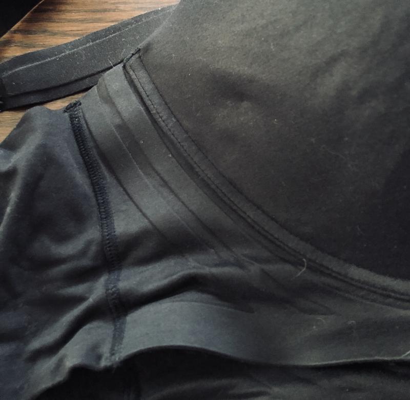 Soft material and the straps don't slip but the cut across the breasts creates a "double boob" look.