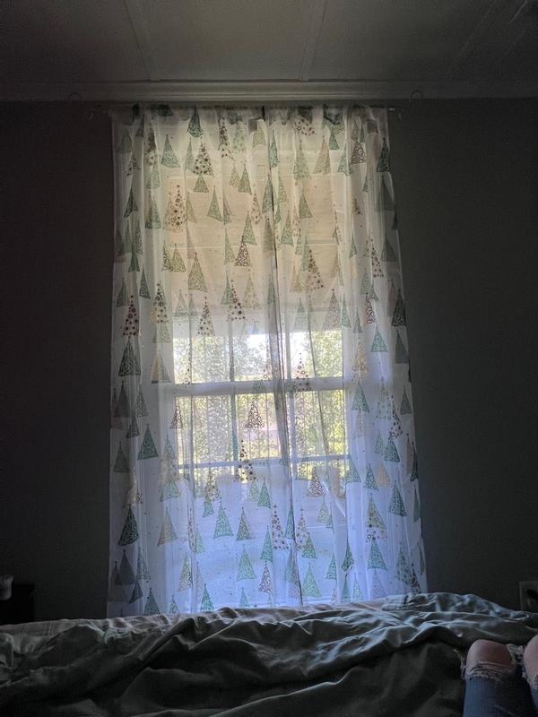 I love love Christmas! And these curtains are so beautiful . First of all it’s a sheer curtain so it doesn’t have any type of light blockage. The material is soft and it was pretty easy to put up! I love how it just makes the room feel cozy and sparkle ! I want more ! I’d put it up all over my home!!!!