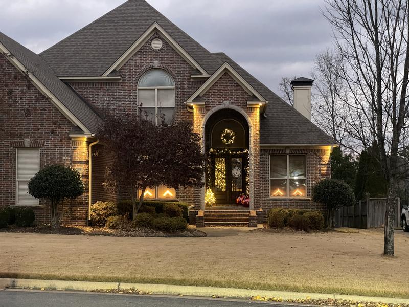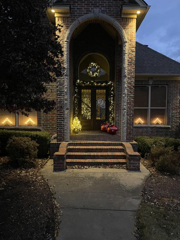 We purchased the Red Berry Pine Outdoor Garland, wreath, and swags. They look great! The lights are not warm yellow but rather soft white, but still look great when lit up. The berry and cones are easily removable to make room for the corner, lamposts or other outdoor equipment that could pose a barrier for easy hanging. We strung 2 10ft garlands to a 6ft and rearranged some of the accessories to make the length of the garland look full. We used green zipties to hide the transitions and also to affix the garland to some vice clamps on the brick. The wreath is gorgeous and really fills in the space.