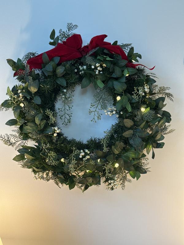 We love our white berry wreath. It looks very smart and festive on our front door. Many people have remarked on it. The lights make it magical. Would definitely recommend it.