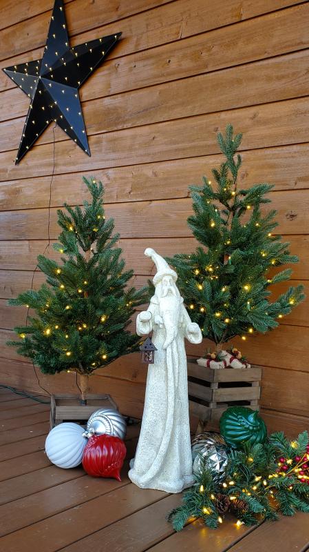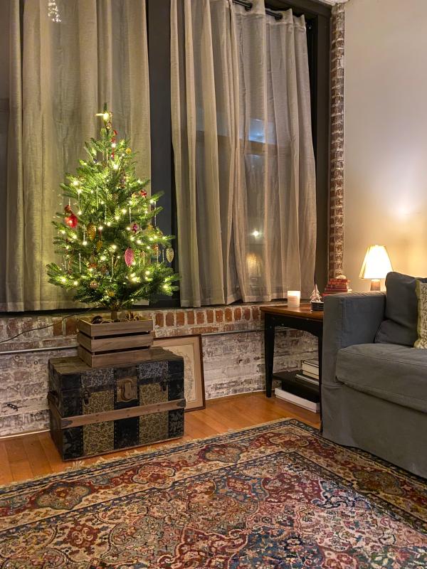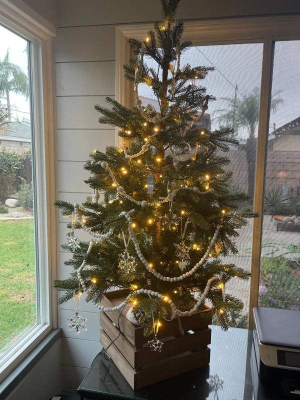 I spend Christmas with friends in another part of the state. Needed a small tree that would be light enough for travel and work in our holiday cottage. This tree was the perfect choice. It's lightweight, attractive, and has enough open branching to show off ornaments. Quick setup with minimal fluffing required. The crate of this tree is 9"w x 9"d x 7"h, is very stable and sufficiently neutral to blend with a variety of decors. It has 100 mm5 lights. I have deducted a star for 2 reasons. First, the lights are not evenly spaced and appear to be a custom strand that will not be easily replaceable when it becomes necessary. This wasn't a huge problem for me since I added 35 Tru-Tones and the tree looked great with the combination. Second, Balsam Hill does not include a storage bag with this item. Overall a good little tree and perfect for my needs.