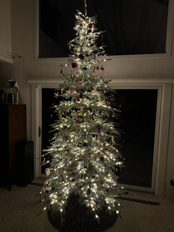 Love my frosted tree with the warm white lights. I purchased it after the holiday and am going to leave it up for a few months because who doesn't love bring nature into the home! Besides, I want a little snow to brighten my life. The tree was very easy to put together by myself and is the perfect size. I need to spend a little time fluffing it a bit more, and I am very happy with my purchase.