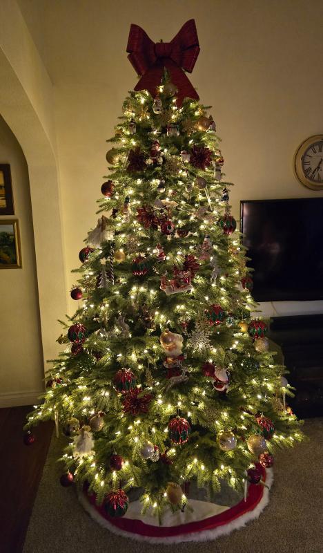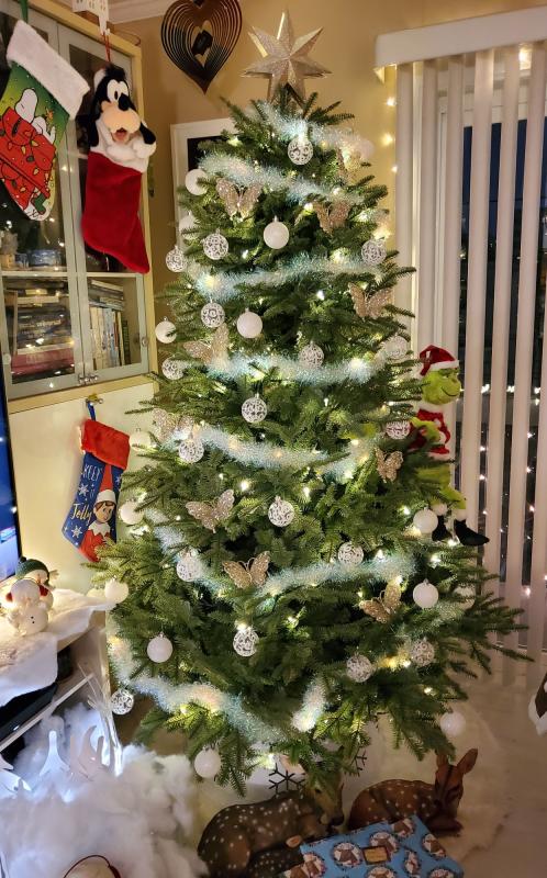 I am happy with this tree. The plastic tips take a bit of getting used to, but from a little distance it looks quite real. Decorated it is pretty. The storage bag it comes with is a travesty. It is floppy and three times the size it needs to be so is very hard to manage, plus it is only rip stop plastic. You will want to look for a better storage bag. Delivery was super fast and the box was well packed. I am sure we will enjoy this tree for years to come. Overall I would recommend this tree.
