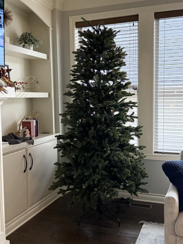 This tree is just beautiful and perfect if you have taller ceilings, but you have a narrower space it fits perfectly in the front window. The needle foliage is totally realistic and as I was with Balsam Hill an excellent product I love the lights because they really resemble a warm glow incandescent light.