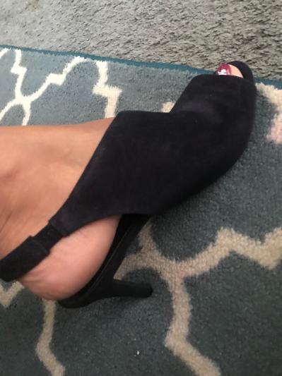 Great pair of heels. This does run small. I wear a 5 1/2 and had to get a 6. Wish that you could adjust the strap but it is a slip on the heel. I will have to put a pad in the food bed to take up a tad bit of slack. The shoe has a nice heel and it could compliment both dressy or a casual look. The peep toe and cut out on the shoe gives it immense style. It is comfortable and features a nice suede finish on the shoe. Great Find, Great Purchase, Great PRICE!