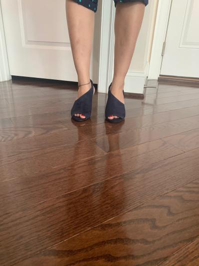 I ordered these shoes for my wife, and she loves these shoes! I love navy blue shoes, and she loves them also. The shoes are very versatile and can be worn with a nice pair of jeans, slacks, or a cute dress or skirt. My wife likes them because the heal is not to narrow like heels which allow them to feel more comfortable when walking. The material that the shoes are made of make them easy to clean if a stain got on them. The only drawback to the shoes is that they run a little small. My wife asked me to get a half-size bigger when I ordered them, but I advised her to get them her exact size. Bad idea, the shoes fit and are comfortable, but her heel hangs off ever so slightly of the back or if she pushes her feet further in her toe sticks a little further out than she likes. Overall, the shoes look and feel fantastic but make sure you order them a half size bigger, especially if your feet may be a little wide or without an arch.