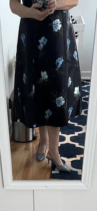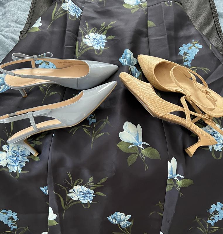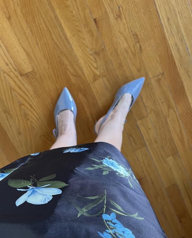 These shoes are gorgeous. Got the light blue patent and they match my blue and ivory dress perfectly. They fit perfectly in my normal size 7.5. Perfect heel height. Love the adorable side bow.