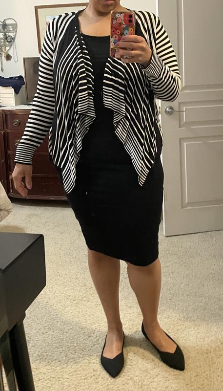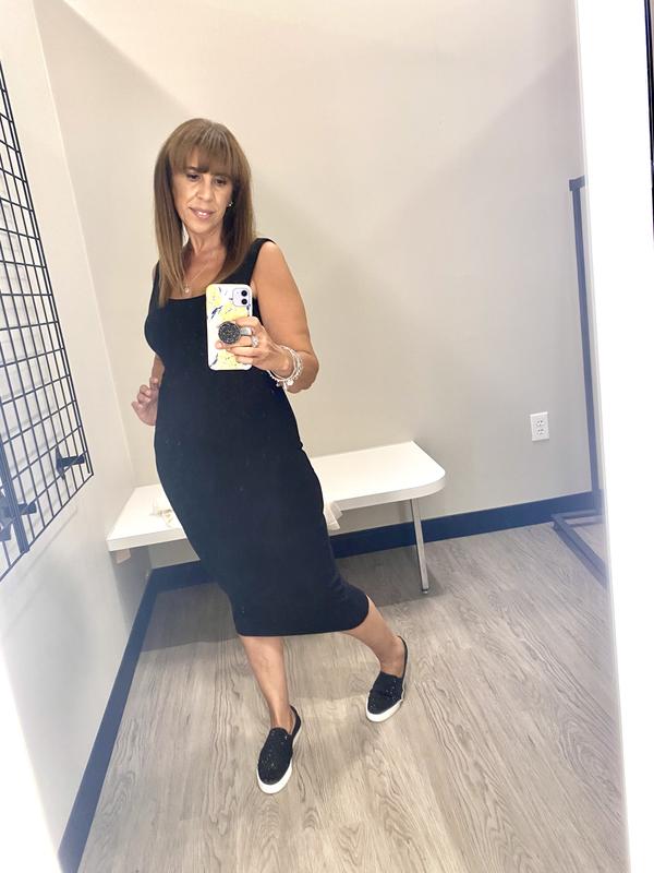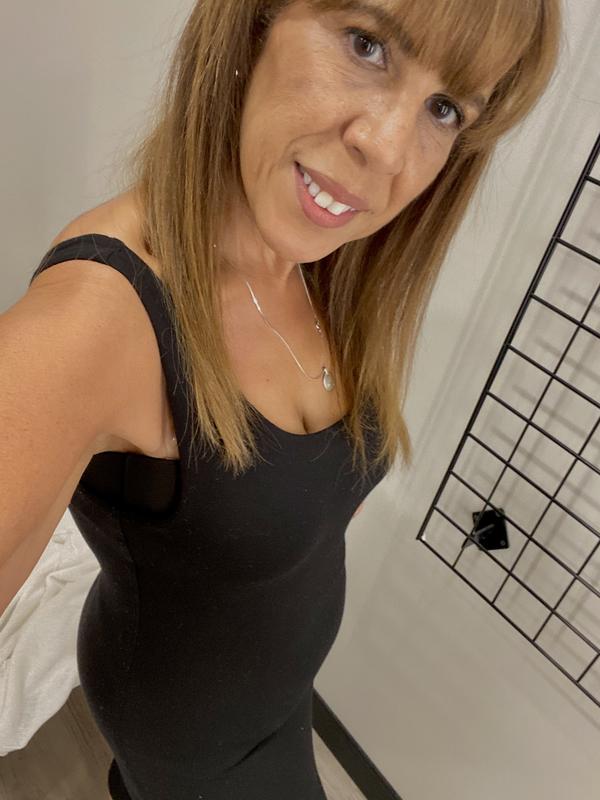 Took a chance with this one (afraid it would be too tight), but it fits nicely. Accentuates my curves in all the right places. I absolutely love its length, which is longer. I feel it helps to balance out the form-fittingness of the overall dress. It really has a Barbie-doll feel to it.
