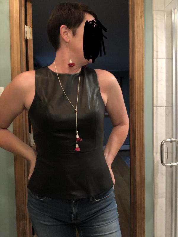I love peplum tops and this one is no different except that it is faux leather. I found the top to be somewhat tight even though there is a stretch material and zipper down the back.
