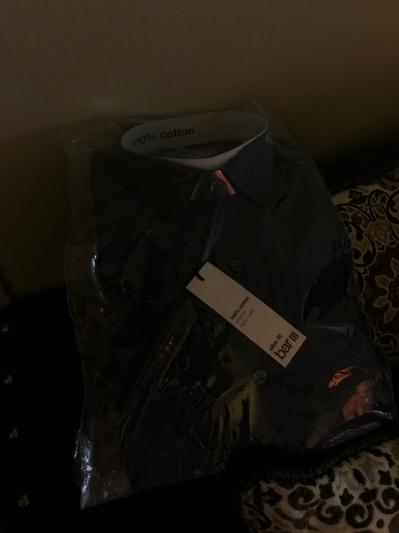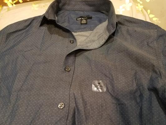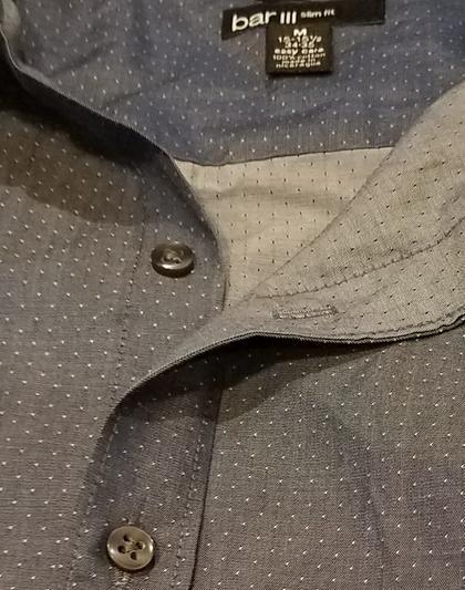 My husband had to shop in a hurry so we went to Macy's to purchase this black shirt for his twin brother's funeral. The Shirt fit and he looked great.