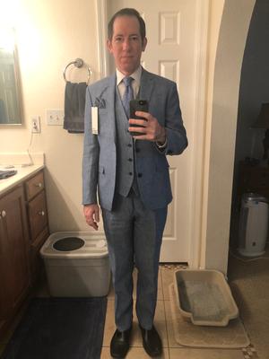 The suit fits surprisingly well. The material is fine. The details are also surprisingly good. I particular appreciated the colorful lining.