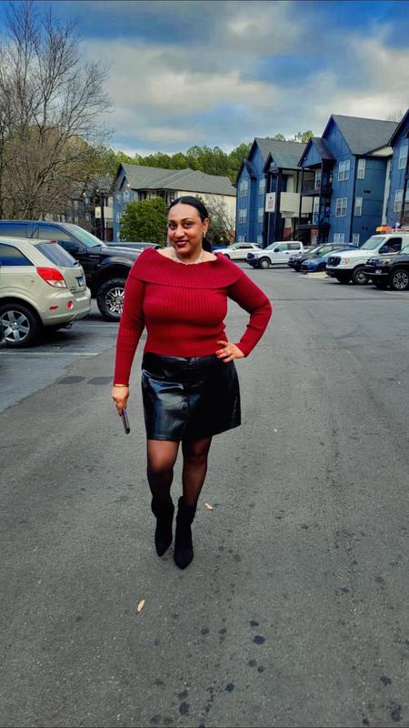 I love this skirt, its cute, the fabric feels pretty good for the price and its a good length, but make it make sense that I got the 1X in this skirt and it is smaller than the XL I got from the same brand in the plain faux leather mini skirt version... Something is wrong with their patterns if the sizing is off that badly.