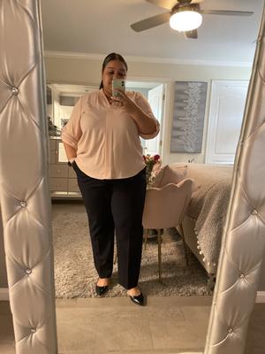 Got these pants and the matching jacket to make a sophisticated looking suit. The pants are a perfect regular length, if you’re on the 5’5 or over side, they might look a bit short. Perfect for my height and wearing to work. So happy these come in basic black and in plus size.