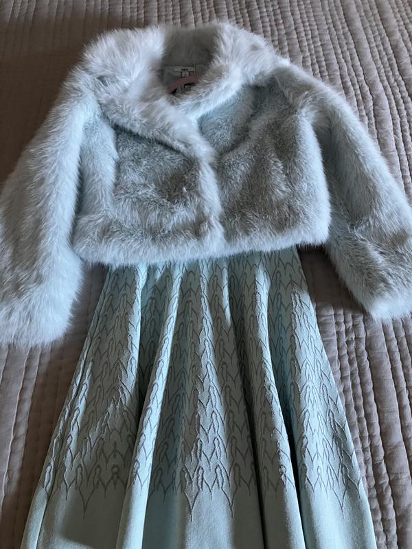 The baby blue color is so pretty. And the jacket is very soft and comfy! Can’t wait to wear!