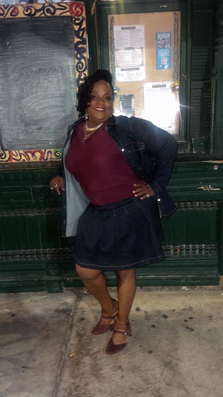 I like the fit of this oversized denim shirt. It was very comfortable. I also liked the dark wash color.