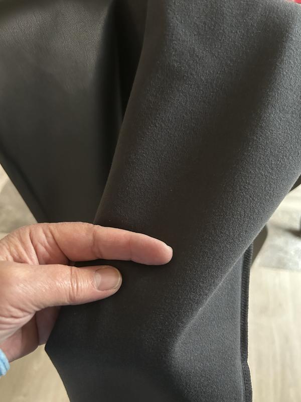 I bought these slick fabric pants/leggings on sale, to wear so I could walk my son’s Golden Retriever without getting shedded fur all over my slacks. The XL size was bigger than I expected, but they are fine for my intended use.