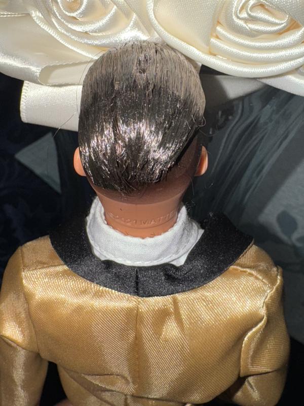 The Holiday Ken for 2025 was a very anticipated doll for me because I was excited to see the different choices available for Ken. I choose the Ken who matched the Ever After High Doll Hunter that Mattel had discontinued years ago. Out of the box, his hair is very plastered with gell or glue because it's going no where. His printing was flawless on the sides of his face and I like his almost smirking grin. His features are not pixelated and there's no discoloration in the plastic used to create his body. I was very disappointed that he has limited articulation. Movement at the head, shoulders and hips, something I would expect from a basic Ken. His jacket was nice though the plastic tab puts a hole in the fabric and to keep it closed I will have to stitch on a snap. I really appreciate that the shirt and jacket are separate pieces! The shirt is Velcro in the front but in order to remove it you have to cut the stitch at the bowtie. Another snap I will have to add. The pants are a magnet for lint but I love that they are not shorts. The doll is still the good quality I expect from Mattel and I love that this doll could be a relative of the Hunter doll from Ever after High. There's not a perfect skin match to existing made to move Ken dolls but I did swap his body with the Signature Looks doll with long brown hair. I needed more articulation.
