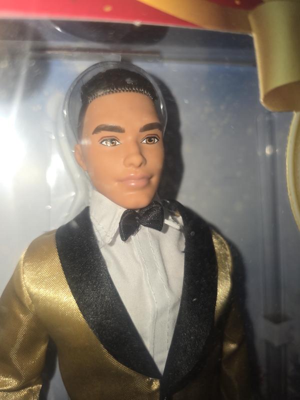 Look no further! Get your Holiday Ken to add to your Barbie lovers collection. We adore Ken's fancy outfit that includes a shiny gold jacket, bow tie, black dress pants and dress shoes. Ken is all dressed and ready to party! This Holiday Ken doll comes with a stand and a certificate of authenticity! Get your Holiday Ken today!