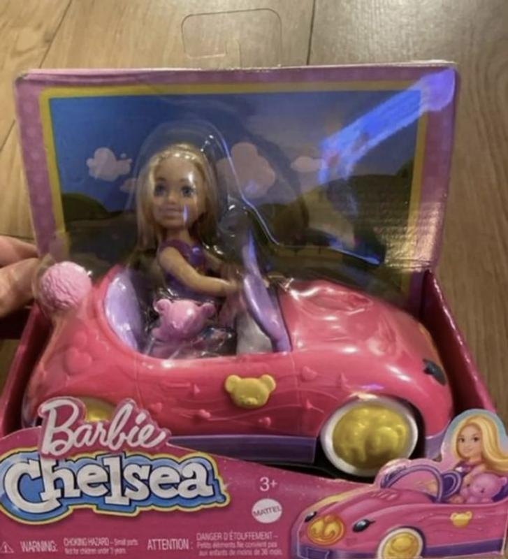My daughter LOVES this super cute Chelsea car. It comes with a mini plastic teddy bear too. Chelsea fits into the care perfectly. You can even move her to the side and squeeze in a friend. My daughter loves that it is like the bigger Barbie car but for the Chelsea dolls. Would recommend this to Barbie loving kiddos!