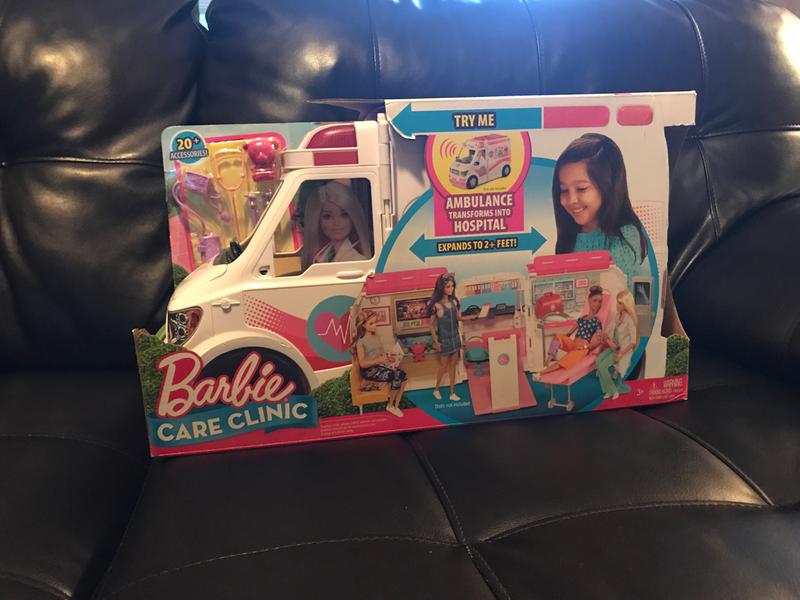 This Barbie Care Clinic is so adorable it comes with several small accessories and a working siren. It was fairly easy to assemble. Although a ton a stickers had to be applied. I noticed one spot the seemed to have maybe missed a factory sticker. See photo below. Overall kiddo loves.
