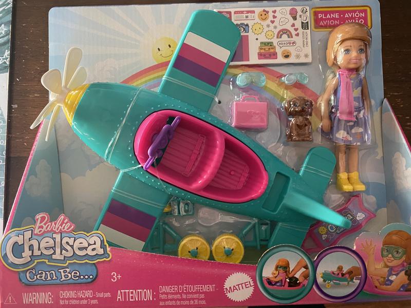 Chelsea Can Be Plane Doll and Play Set, 2-Seater Aircraft with Spinning Propeller and 7 Accessories