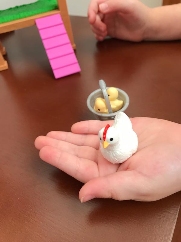 I got this for my 3yr old daughter and she absolutely loved it! It came with "mamma and daddy chickens" as she called them and also a few baby chickens. This is her new favorite Barbie! She loves to carry the babies in the basket and walk them up the ladder to "bed" I love that Mattel is making different Barbies for all different lifestyles like on the farm :)